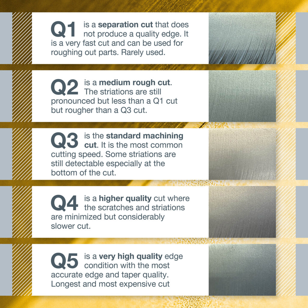 Our standard is a Q3 which optimizes quality with price. This is the default choice for the majority of our customer base. Q4 and Q5 cuts are higher quality cuts but the higher quality and a much slower cut comes at a higher cost.